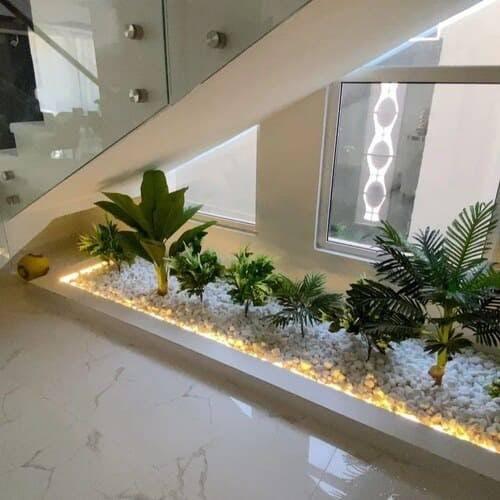 إذا كان لديك مساحة تحت الدرج غير مستغلة،  تقدم لك حلول تصميم مبتكرة لتحويلها إلى ركن جمالي أو وظيفي يزيد من جمال منزلك. يمكننا تصميم مكتبة أنيقة، أو خزانة تخزين عملية، أو حتى ركن للزينة والنباتات ليمنح المكان لمسة فريدة.